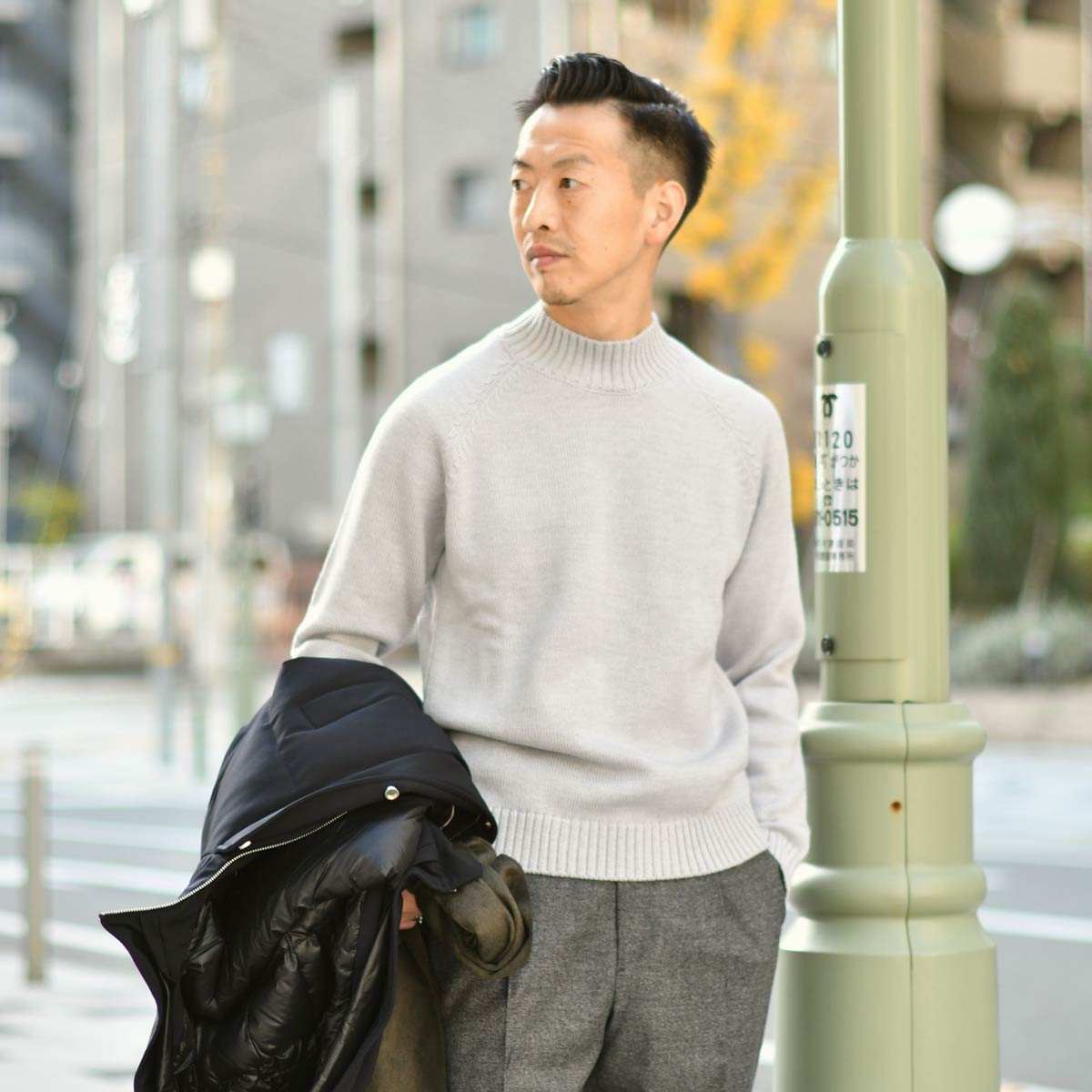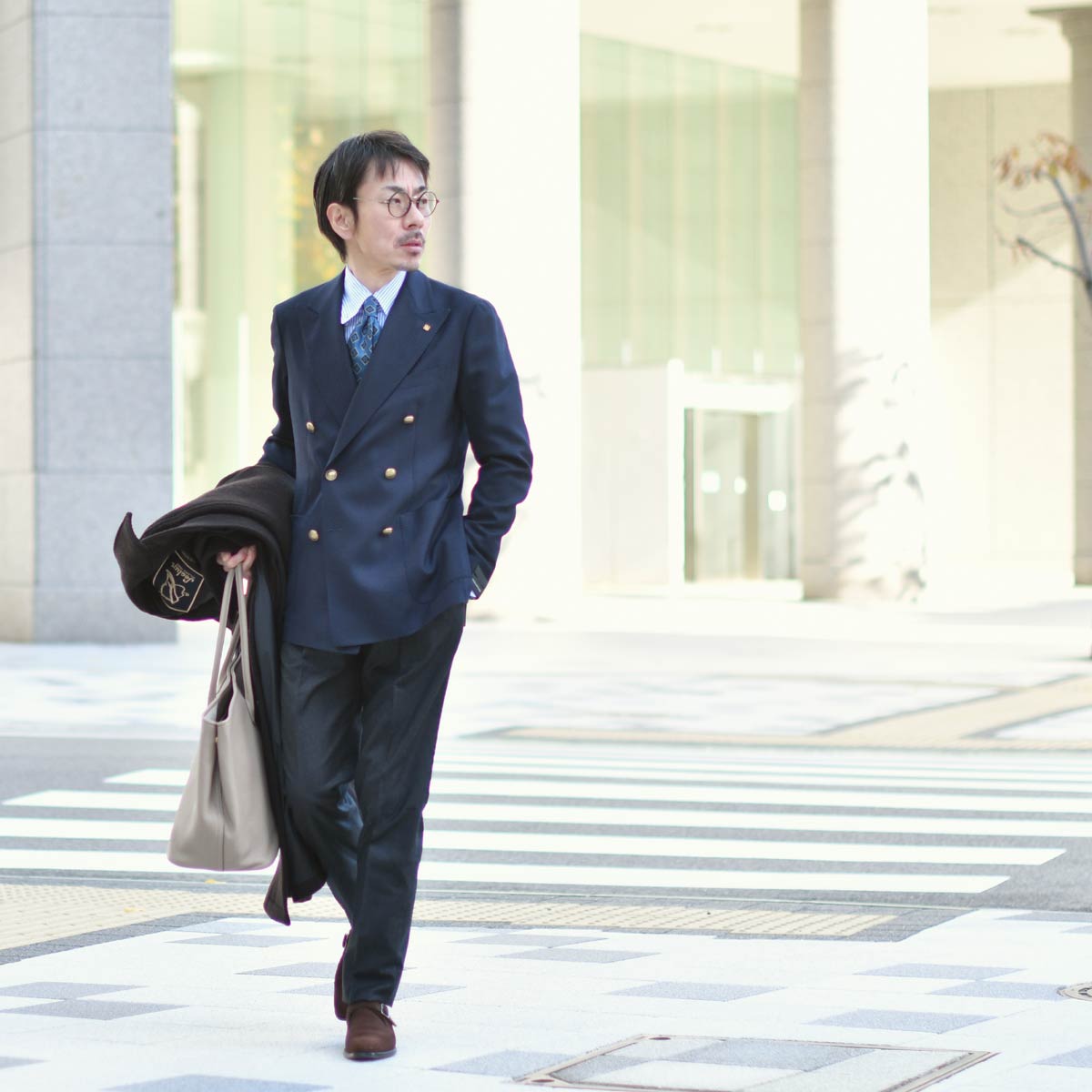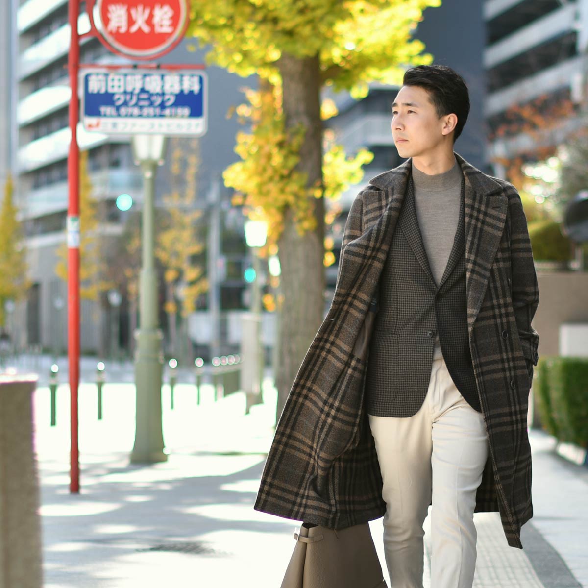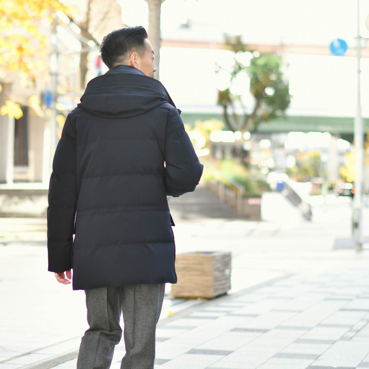 ネイビーとボルドーは相性の良い組み合わせですので、冬に必須のコートとマフラーもネイビーで揃えました。