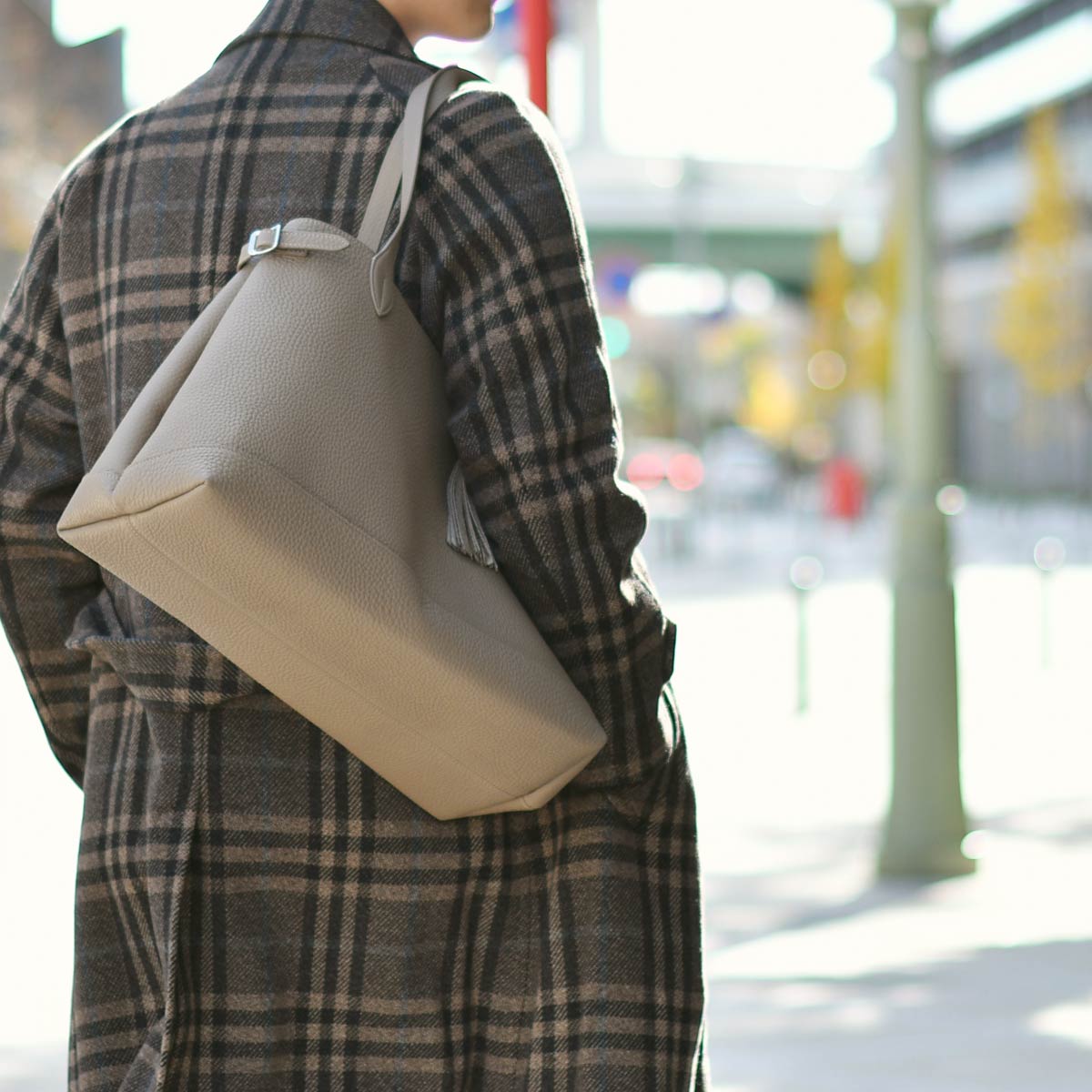 レザーアイテムはブラックでまとめれば、ネイビーアイテムとのつながりも良く、ボルドーが際立ちます。