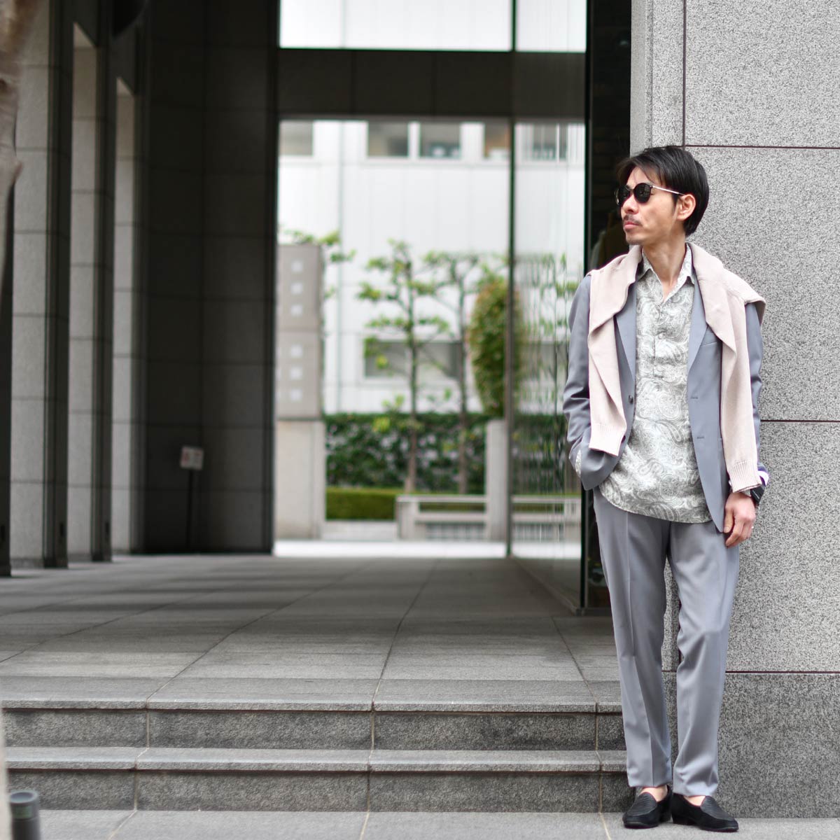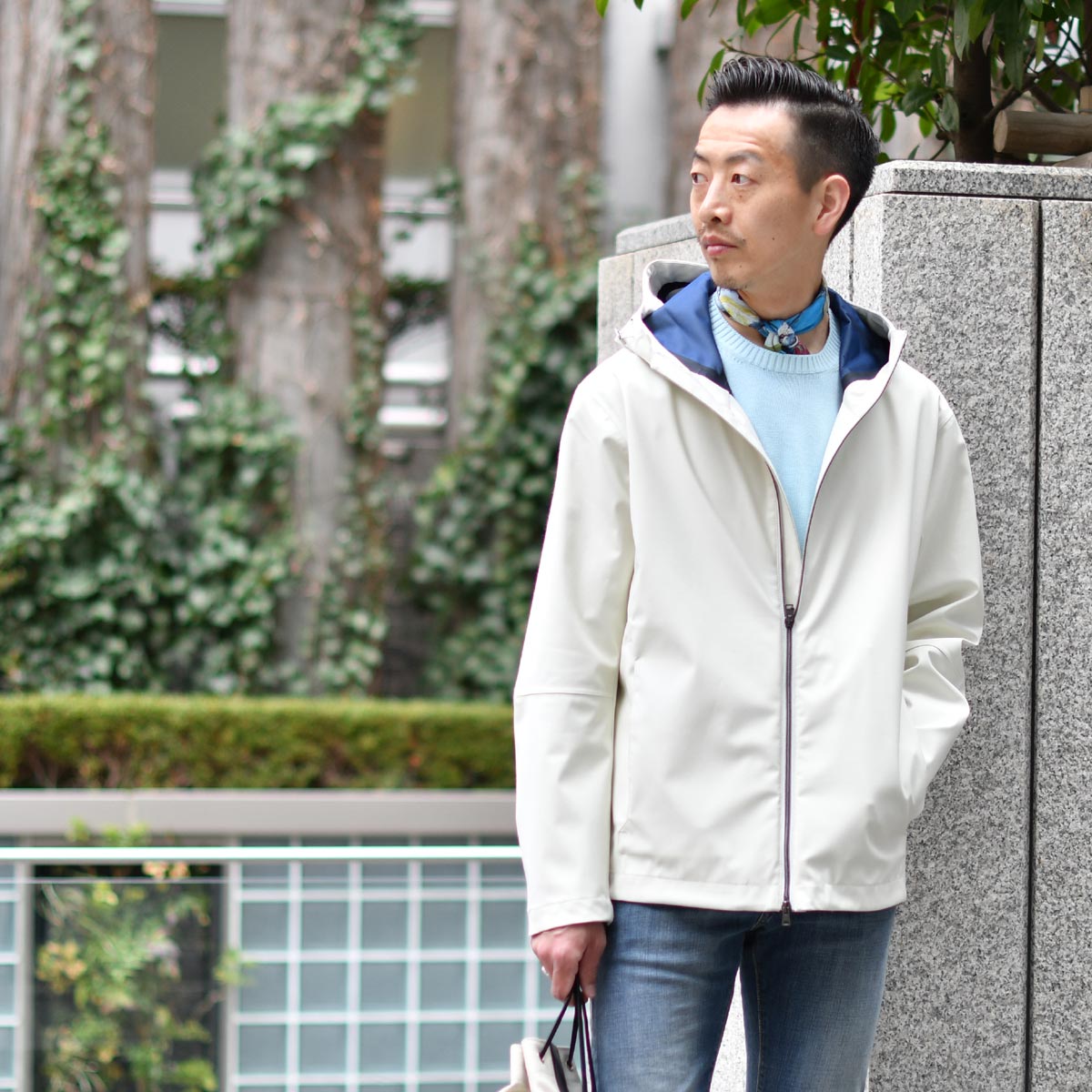 ということで本日は秋冬スーツの上から、軽いアウターを羽織った春ミックス!