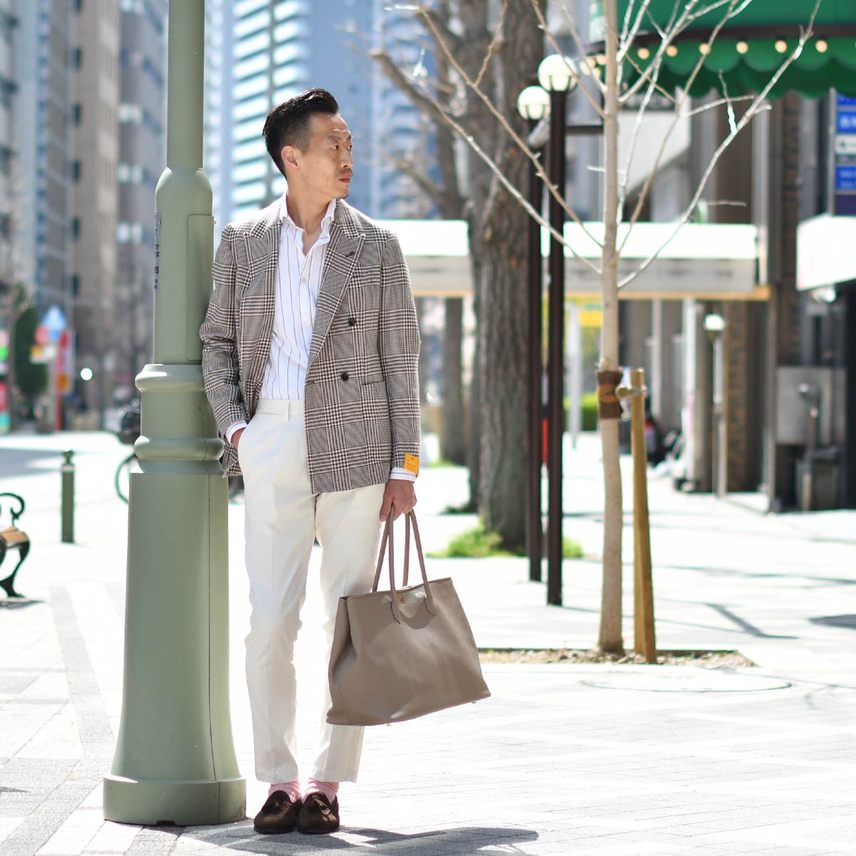 季節感も捉えた大人なスーツスタイルです。