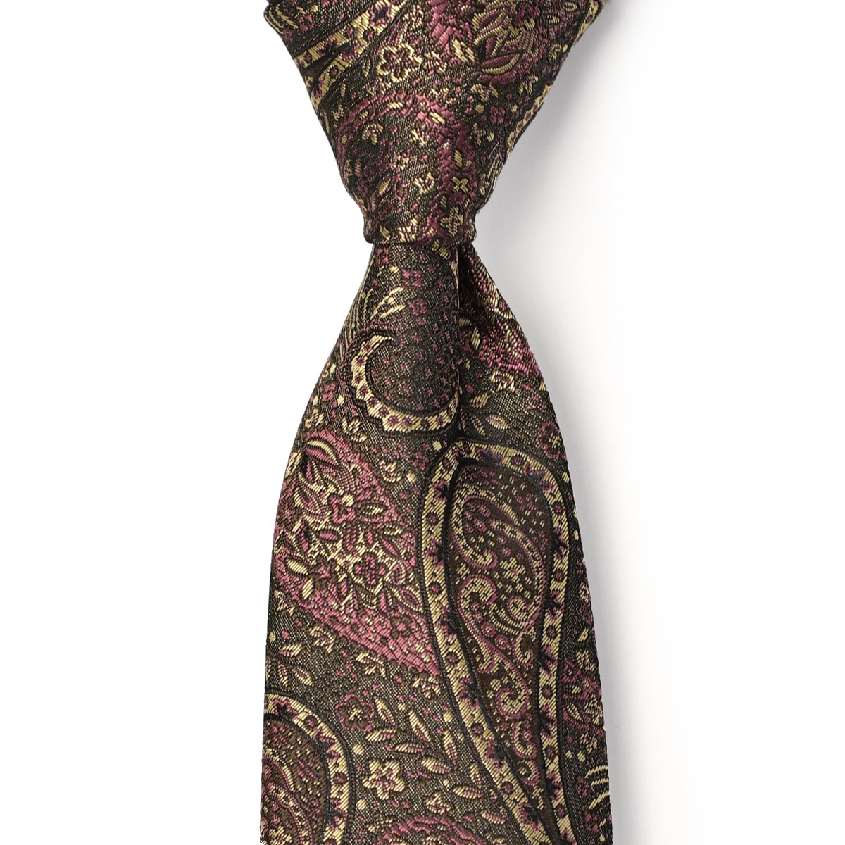Atto Vannucci【アットヴァンヌッチ】ネクタイ 30114 セッテピエゲ シルク ペイズリー ブラウン×ピンク