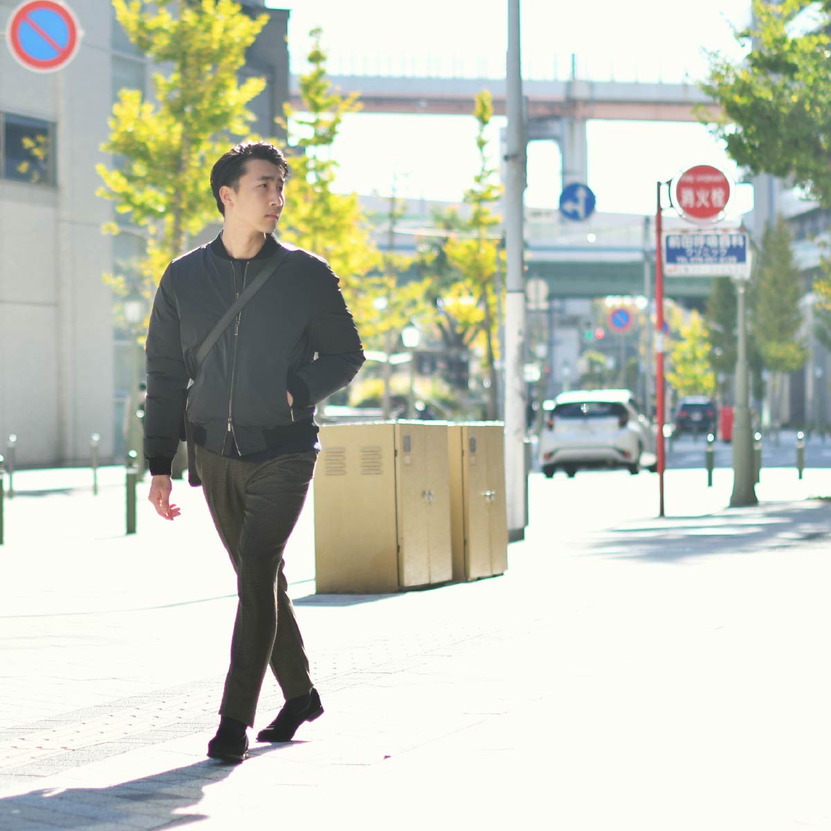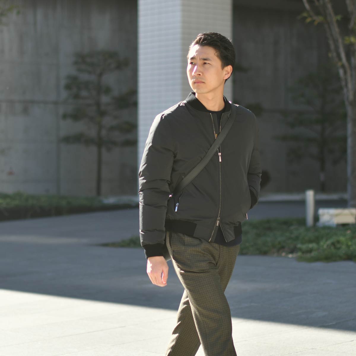 MA-1×スウェットというアメカジの代表的なコーディネートを基本として、少しキレイ目になるよう調整してみました。