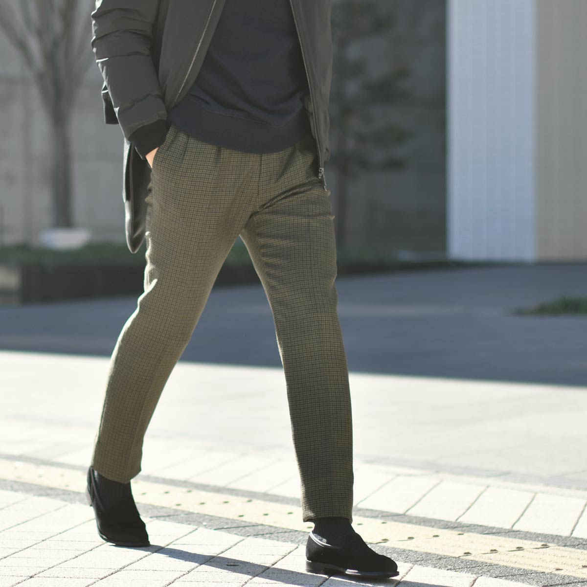 それもアリですが。今回はすいません。ガンクラブチェックのスラックスにしました。