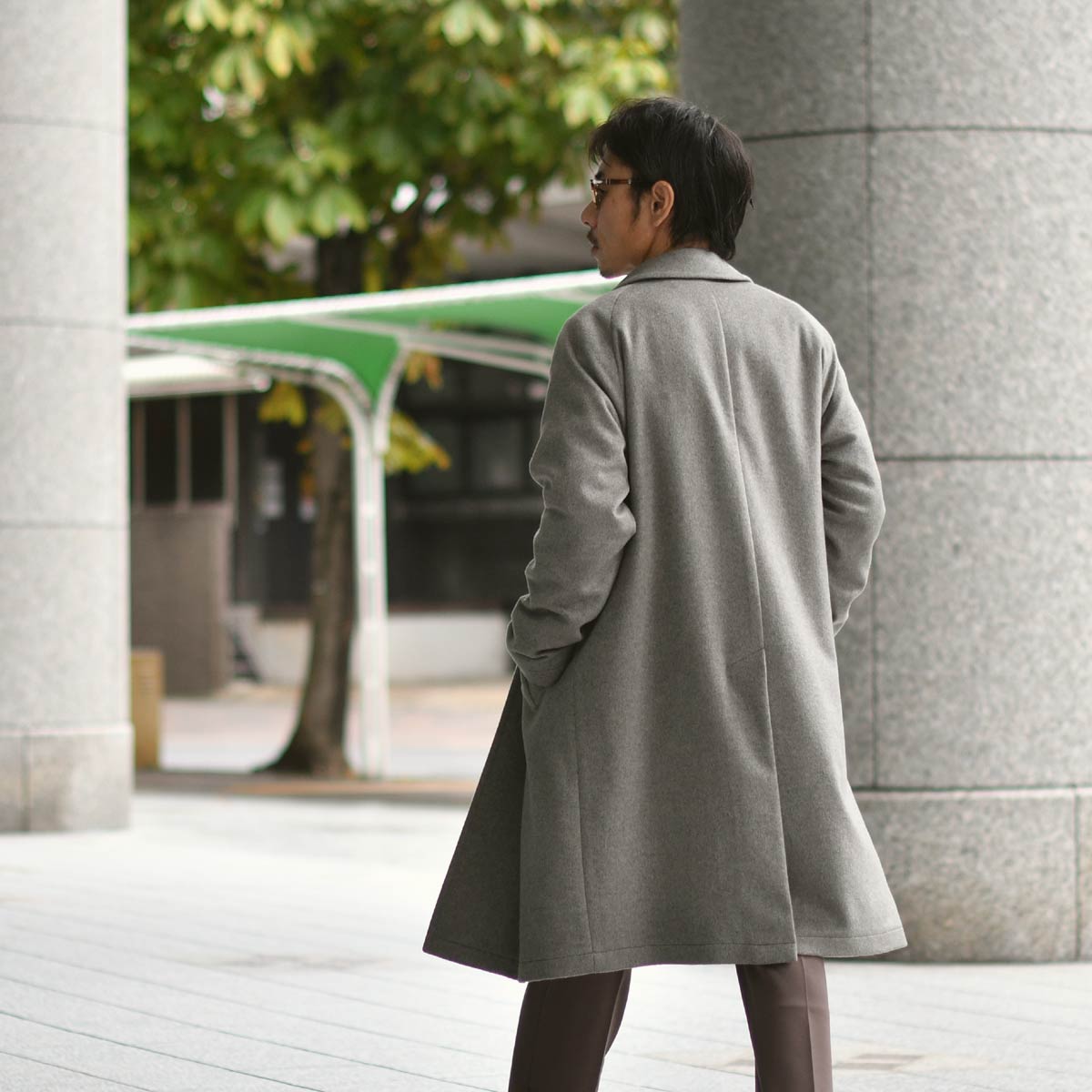 これまでお取り扱いしておりましたベルテッドコートのベルトを省いて、シンプルなバルカラーの出来上がり。