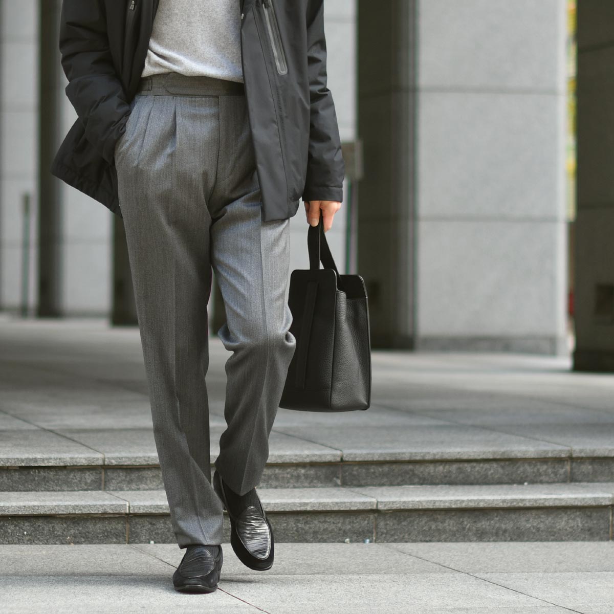 また、ベーシックな色柄でありながらも細番手の上質な素材だからこその、ほのかに香る艶感が大人の色気を漂よわせています。